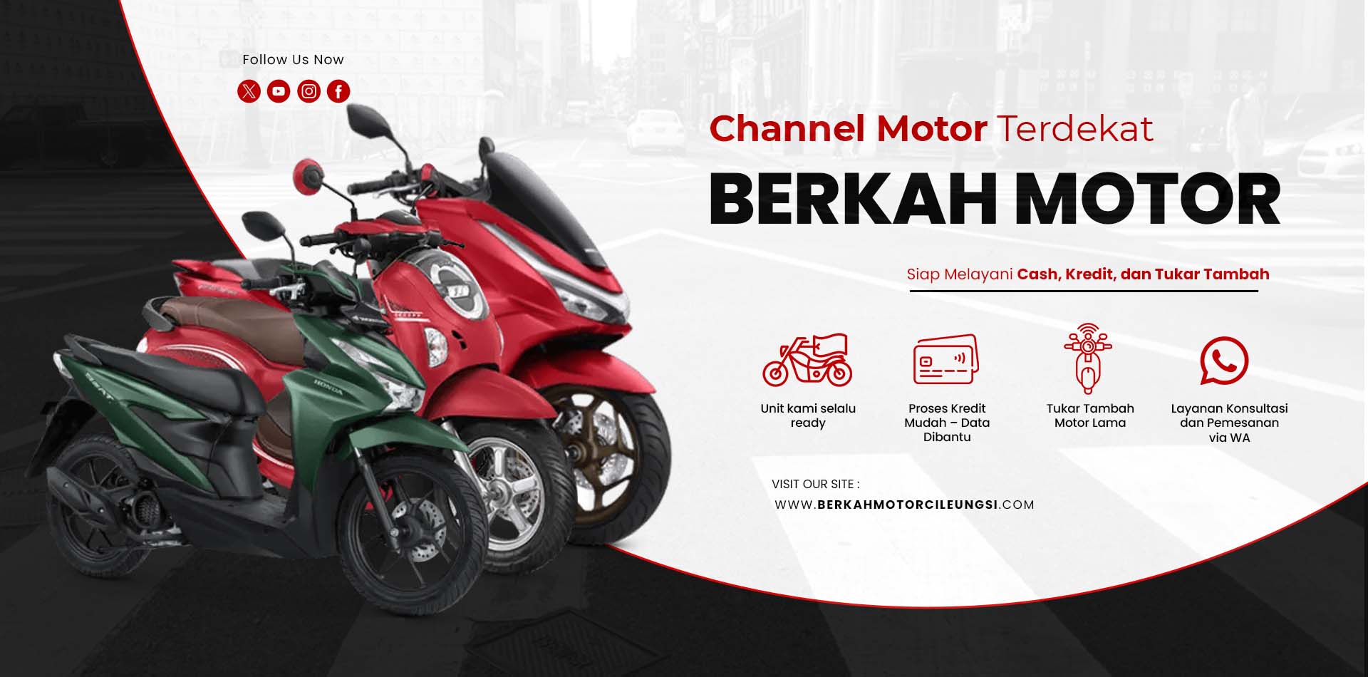 BERKAH MOTOR adalah channel motor terpercaya yang berlokasi di Jl. Cemp. Raya Blok Q1 No.23, Cileungsi Kidul, Kabupaten Bogor, Jawa Barat. Kami melayani penjualan motor baru Honda dan Yamaha, baik secara cash maupun kredit, serta menerima layanan tukar tambah motor lama. Dengan pengalaman dan komitmen tinggi terhadap pelayanan, kami hadir sebagai solusi terbaik bagi masyarakat Bogor dan sekitarnya yang ingin memiliki motor impian dengan proses aman dan terpercaya.